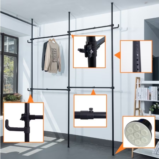 Product Name: Three hangers, adjustable hangers, 2 tiers of laundry heavy duty laundry white wardrobe independent system – black